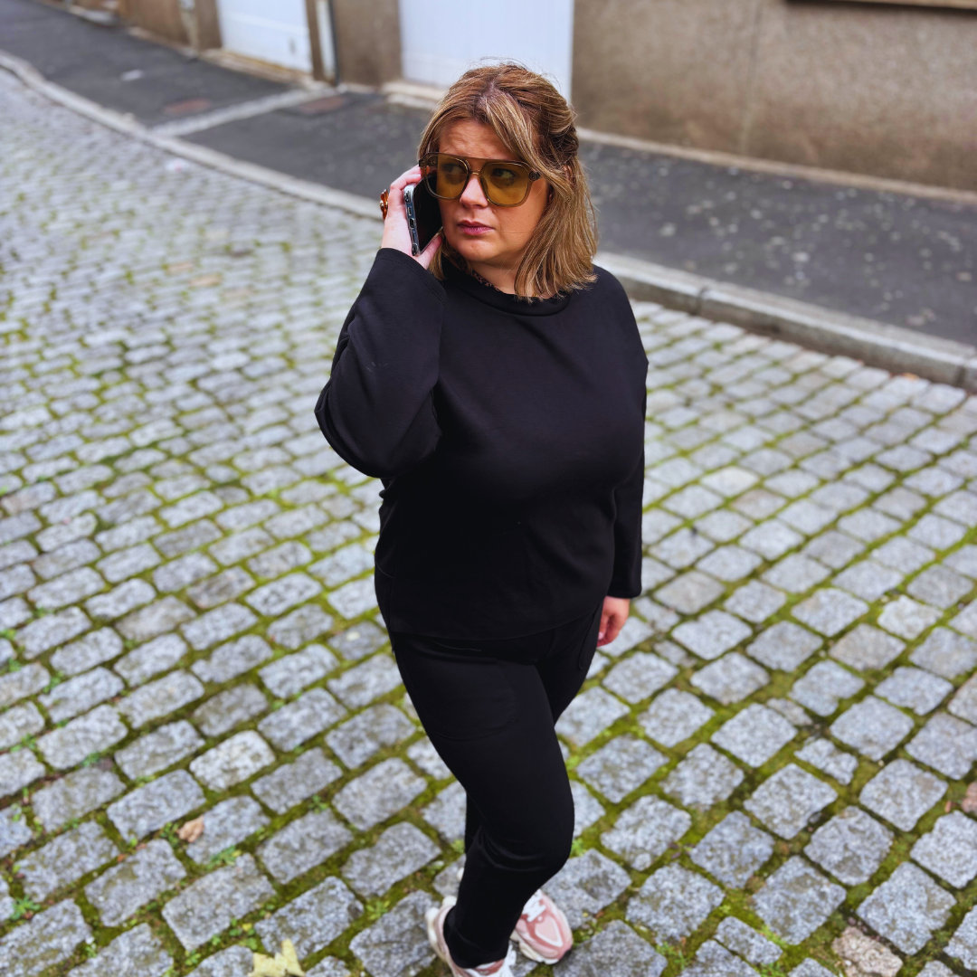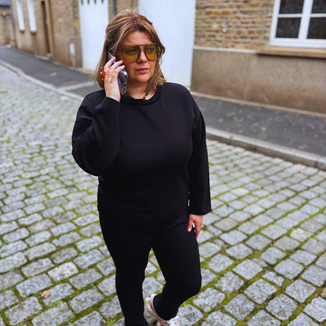 L’ensemble noir qui claque. Haut oversize + pantalon jogging stylé = combo parfait entre confort et flow. Doux, cool et hyper facile à porter, c’est le genre de tenue que tu peux mettre partout : en mode chill, en ville ou même en soirée avec les bons accessoires. Bref, ton nouveau go-to outfit 🖤